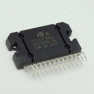 Circuito Integrado TDA7386. Amplificador de potencia de audio de 40 W. El TDA7386 es un nuevo amplificador de potencia ABAudio de clase tecnológica en un paquete Flexiwatt 25 diseñado para aplicaciones de radio de alta gama para automóviles. Gracias a la configuración de salida PNP / NPN totalmente complementaria, el TDA7386 permite una oscilación de voltaje de salida de riel a riel sin necesidad de condensadores de arranque. El recuento de componentes extremadamente reducido permite conjuntos muy compactos.