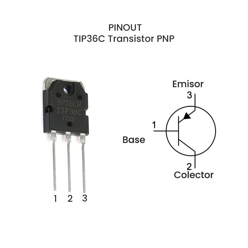 El TIP36C es un transistor PNP de potencia complementario con bajo voltaje de saturación de colector-emisor. Está fabricado con tecnología planar y diseño de isla base. El transistor resultante muestra un rendimiento excepcional de gran ganancia acoplado con voltaje de saturación muy bajo. Diseñado para utilizarse en aplicaciones de propósito general y amplificadores de audio.