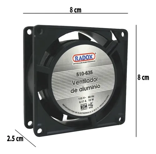 Ventilador Metálico 120 V, 80 mm x 80 mm x 38 mm, 0.17 A