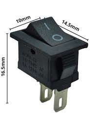 Switch balancín rectangular miniatura, útil para hacer conexiones eléctricas y/o electrónicas.