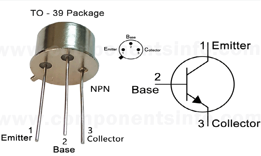 diseñado para aplicaciones de conmutación y amplificación de propósito general, que ofrece buena capacidad de voltaje (hasta 120V) y corriente (500mA) en una encapsulación metálica TO-39, ideal para circuitos de alta potencia y alta frecuencia.- 35 ° C / W Junction to case resistencia térmica