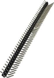 Conector header en linea de 40 pines en forma de "L" o ángulo recto que te permite hacer conexiones eléctricas y/o electrónicas. La separación de sus pines es de 2.54 mm.