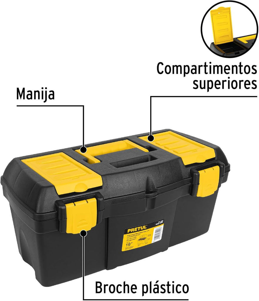 Caja de herramientas útil para taller, hogar, estudiantes que permite guardar herramientas, partes electrónicas, eléctricas, etc. Cuenta con organizadores en la parte exterior que te permite tener un mayor control de las mismas, así como un fácil manejo.