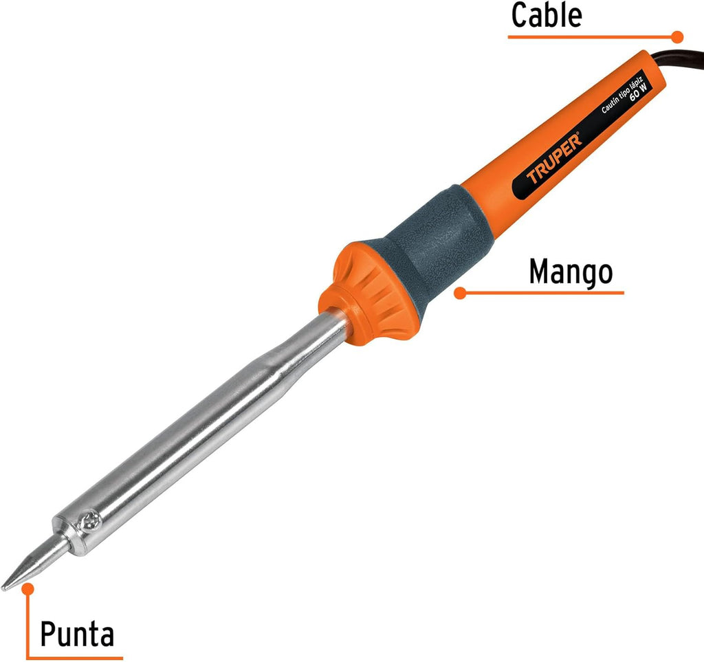 El cautín es una herramienta eléctrica muy sencilla que genera en una barra de metal el calor suficiente para poder derretir los distintos metales (estaño, oro, etc.) utilizados para soldar los circuitos eléctricos y/o electrónicos en placas, chasis y otros. El cautín se utiliza con soldadura permitiendo soldar pequeños componentes como circuitos electrónicos, resistencias, etc. es una herramienta de trabajo básica para cualquier trabajador o estudiante de electrónica. Ideal para trabajos ligeros y proyectos escolares.
